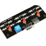 The module with a laser emits light in a red color. Power equal to 5 mW. Voltage supply from 3 to 5 V.Outputs are wired with removed insulation.